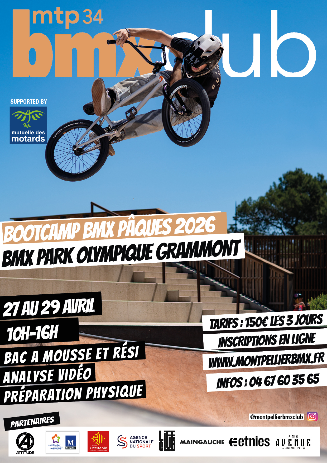 Minimum requis : niveau perfectionnement (1 an minimum de pratique du BMX Freestyle) / à partir de 7 ans